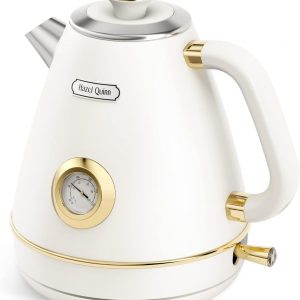 Hazel Quinn Retro Electric Kettle 1.7 Liters 57.5 Ounces Tea Kettle with Thermometer All Stainless Steel 1200 Watts Fast Boiling BPA-free Cordless Automatic Shut Off Pearl White