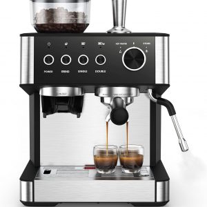 Espresso Machine Built in Anti Clog Coffee Grinder Milk Steam Wand Frother Tamping Tools Grinder for Lattes