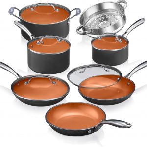 Gotham Steel 12 Pc Ceramic Cookware Set Nonstick Ceramic Pots and Pans Set Non Stick with Steamer for Cooking Non Toxic PFOA PFOS Free Ergonomic Stay Cool Handles Oven & Dishwasher Safe Copper
