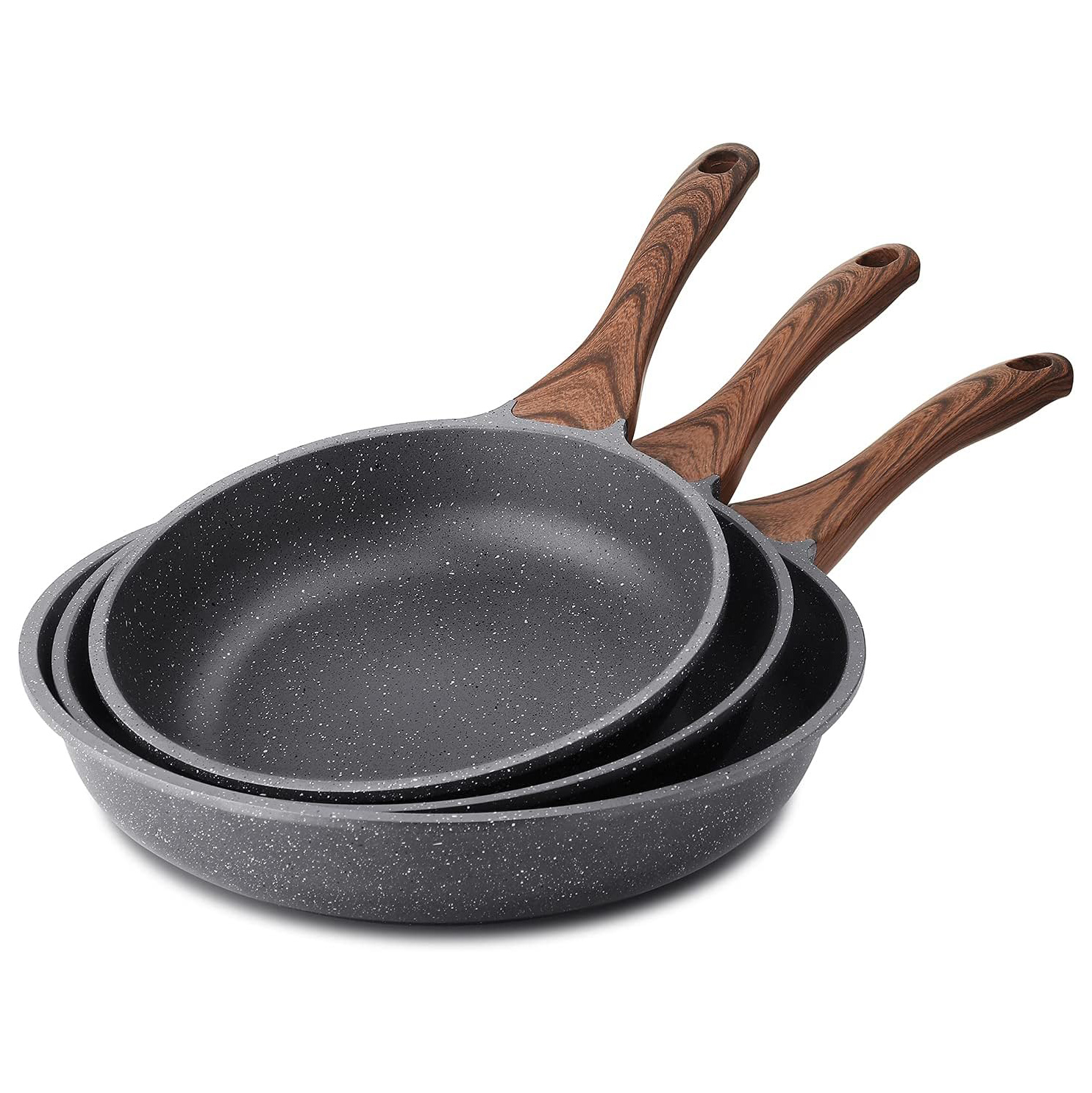 SENSARTE Nonstick Frying Pan Skillets, Swiss Granite Coating Omelette Pans, Healthy Cookware Chef’s Pan, Free of Intentionally Added PFOA (9.5+11+12.5 Inch)